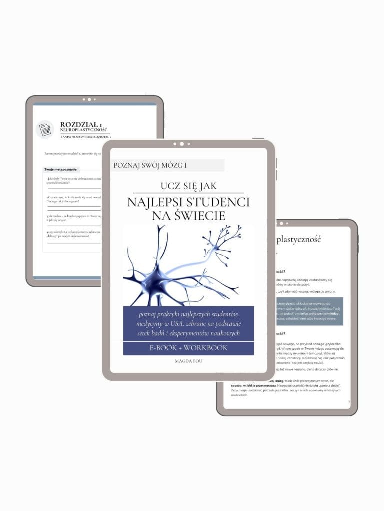 Dzięki pakietowi „Ucz się mądrze” poznasz najlepsze strategie zapamiętywania i produktywności. Teraz kupując pakiet, na e-book „Ucz się jak najlepsi studenci” dostaniesz 50% zniżki.