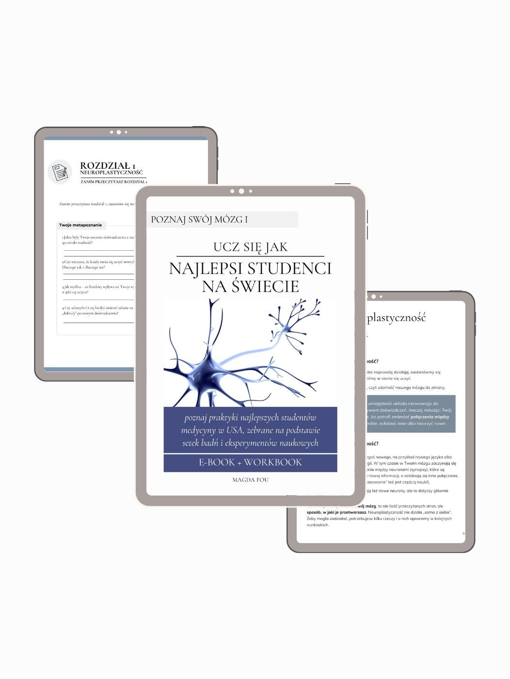 Do e-booka dołączony jest workbook oparty na metapoznaniu – zestaw praktycznych ćwiczeń, dzięki którym od razu przeanalizujesz swój sposób uczenia się i wdrożysz strategie najlepszych studentów do własnej praktyki.